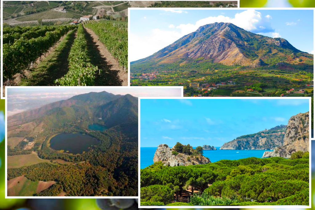 Cilento: Din 1989, Cilento DOC Aglianico este produs într-o zonă diversă din sudul Campaniei, unde peisajul complex combină o coastă tirreniană bogată în stânci, peșteri și plaje nisipoase cu un interior muntos și dealuri line care par pictate, cu soluri argilo-calcaroase și pante abrupte și accidentate, toate împletite cu o rețea hidrografică foarte importantă.