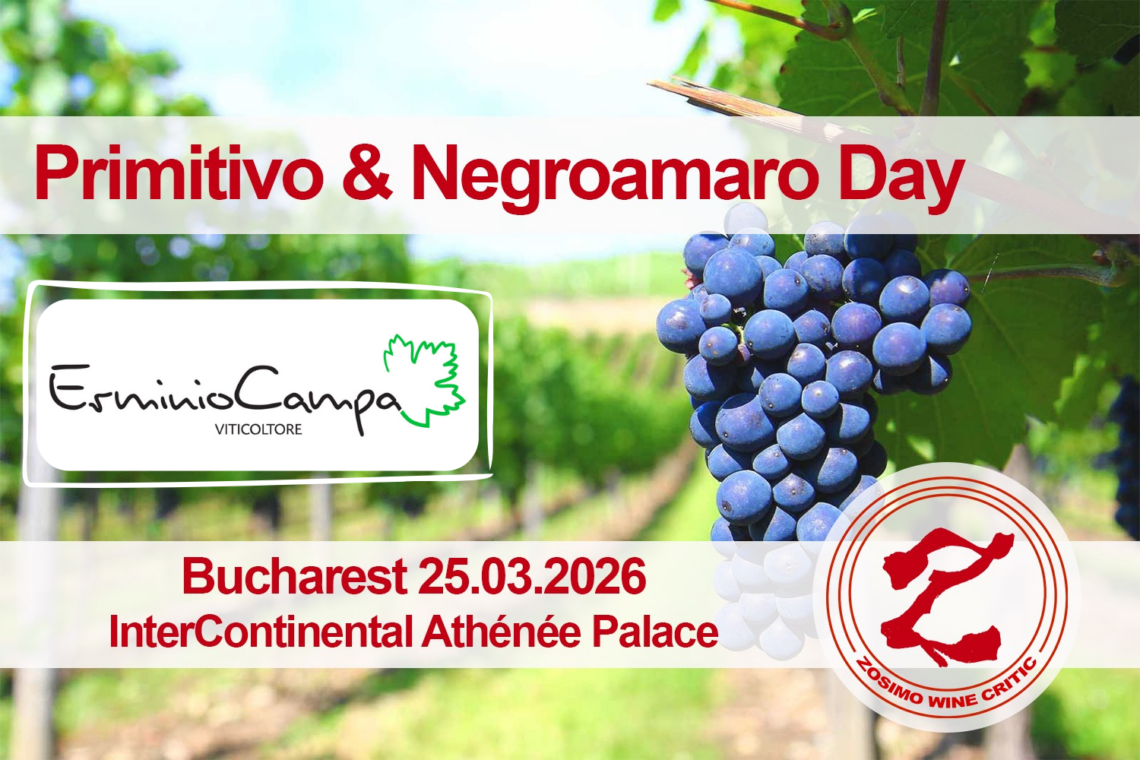 Erminio Campa – Viticultore va fi prezent la evenimentul Primitivo & Negroamaro Day, organizat în data de 25 martie, într-un cadru deosebit oferit de Hotel InterContinental Athénée Palace din Bucharest.